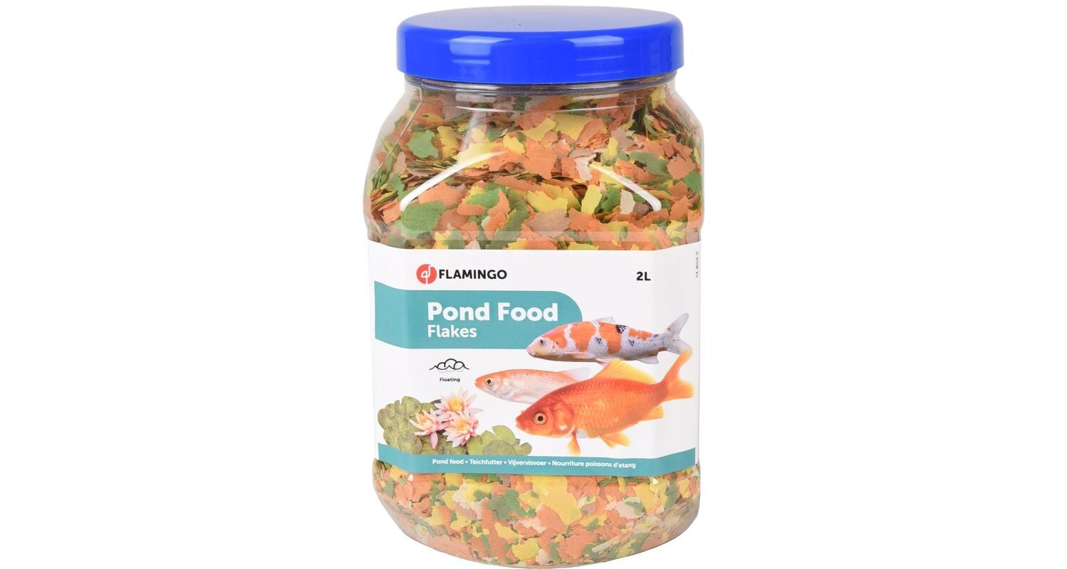 Flamingo VijvervoerZoetwatervissenBewaren op een droge plaatsBewaren op een koele plaats220 gr/2 ltrHooudbaarheid: 01 - 2023Artikelnummer: 1030467
