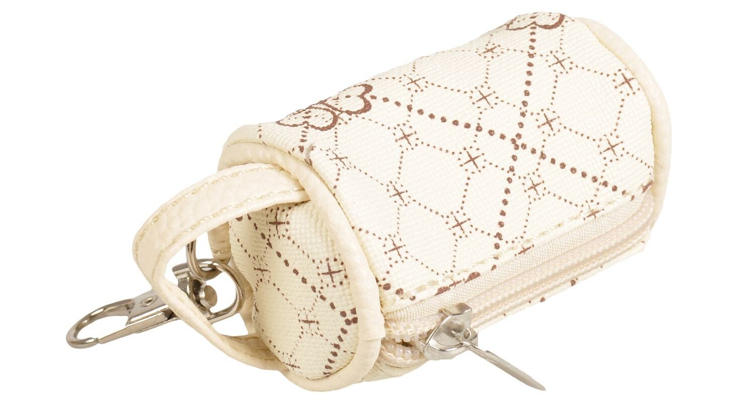 Kleur: willekeurig (bruin, wit)Materiaal: leder en metaalMet geldbeudel met ritssluitingInclusief 1 rolletje met 15 zakjesMet een karabijnhaakEen zakje meet 320 x 220 mmArtikelnummer: 517265