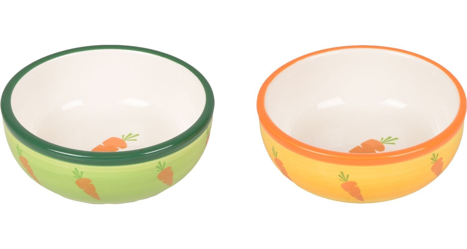Flamingo Eet-/drinkpot IboAlle knaagdierenMateriaal: KeramischKleur: wit/groen/oranje (Willekeurig buitenkant: groen, oranje)Patroon: WortelsAfmeting: 13 cm l, 13 cm b, 4,5 cm h, ∅ 13 cmInhoud: 310 ml240 grArtikelnummer: 210146