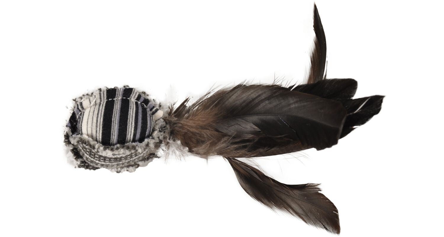 Flamingo Pirin bal met verenMateriaal: TextielAfemeting: 18 cm lKleur: Wit, zwart en grijsArtikelnummer: 560538