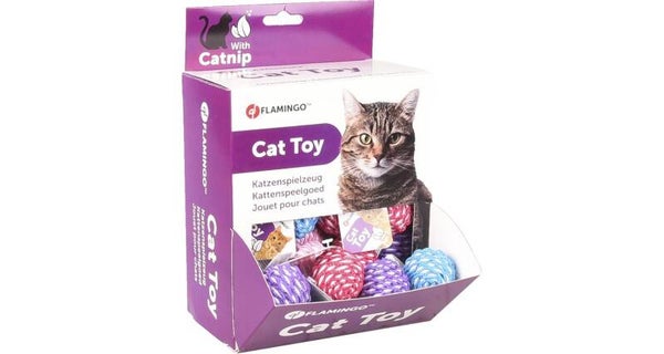 Flamingo kattenspeelgoed bal LukeMet catnipMet rinkelMateriaal: Textiel, Foam/SchuimØ: 4 cmKleur: willekeurig (Paars, Lichtroze, Fuchsia, Lichtblauw)Artikelnummer: 560781