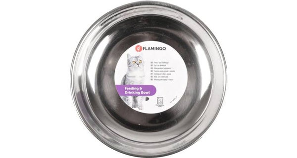 Flamingo Eet-/drinkpot InoxAlle kattenrassen∅ 12cmInhoud: 190 mlMateriaal: Inox44 grkleur: zilverArtikelnummer: 1030080