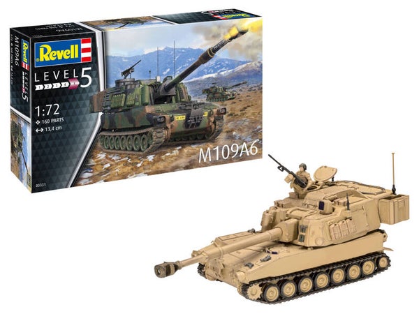 Revell Niveau:5 M109A6Schaal: 1:72Afmetingen: 13,4 cm LLeeftijd: 13+Onderdelen: 160art. nr. Revell03331