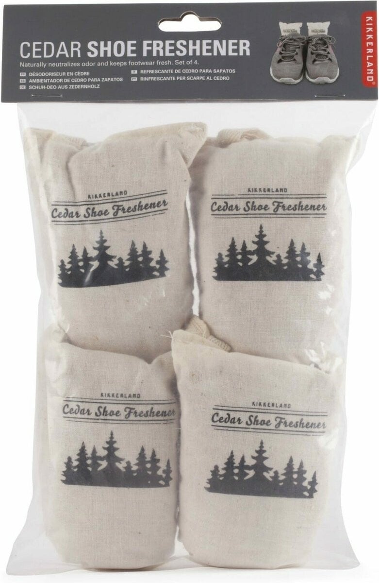 Dit is een verfrisser voor schoenen van cederhout. In de vorm van een zak (4 stuks) waar het cederhout in zit. Nooit meer stinkende schoenen. Het cederhout heeft schimmelwerende eigenschappen en helpt vieze geuren te voorkomen.