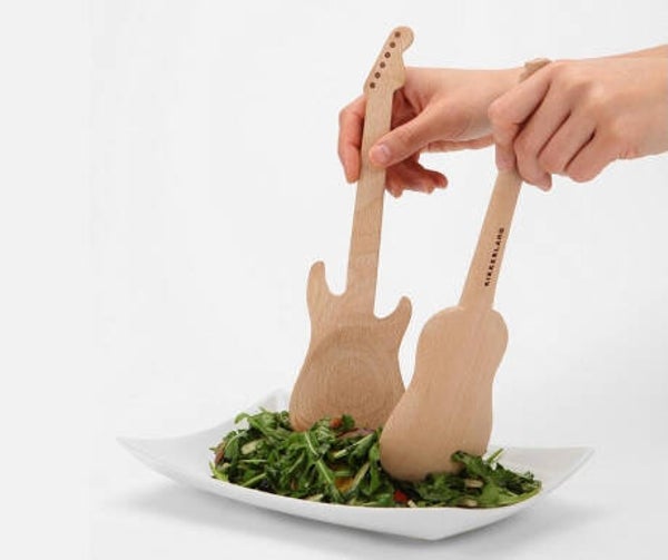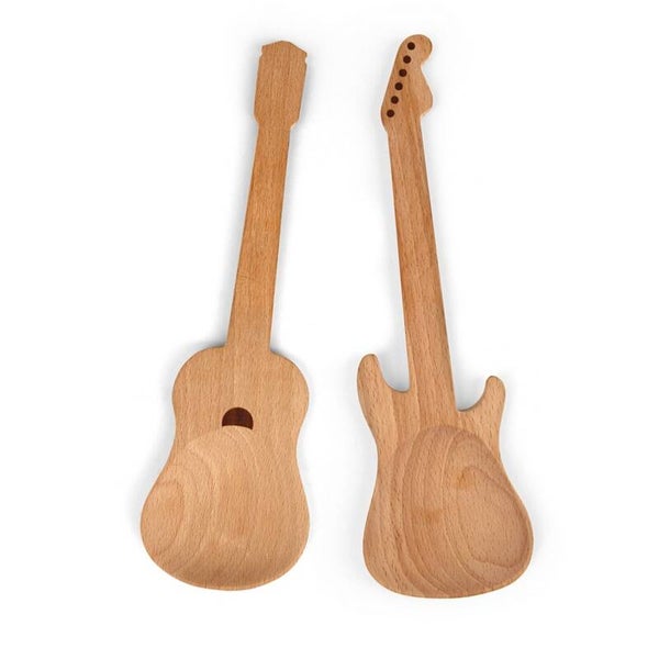 Deze set van beukenhouten lepels in de vorm van een elektrische en akoestische gitaar is een mooie aanwinst om jouw salade, soepen en allerlei andere soorten gerechten te bereiden.
